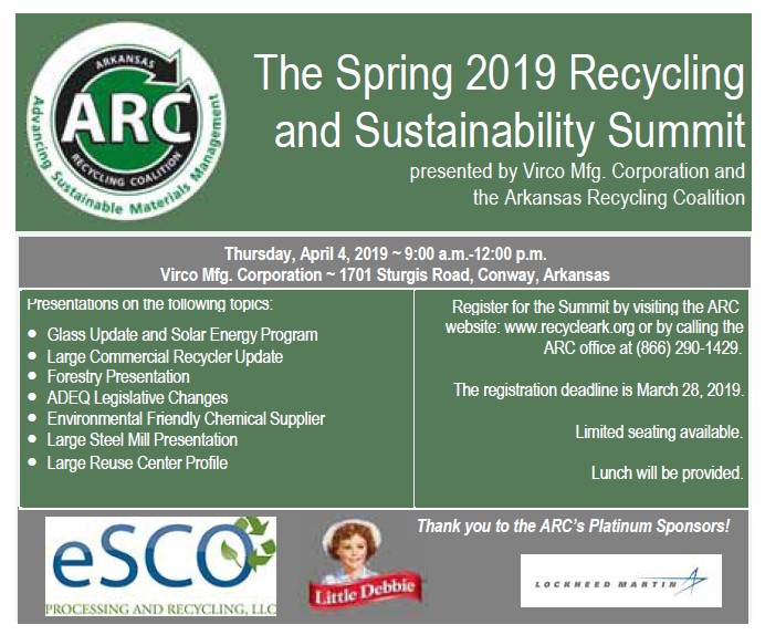 Registration is now open for the VIRCO/ARC Spring 2019 Recycling and