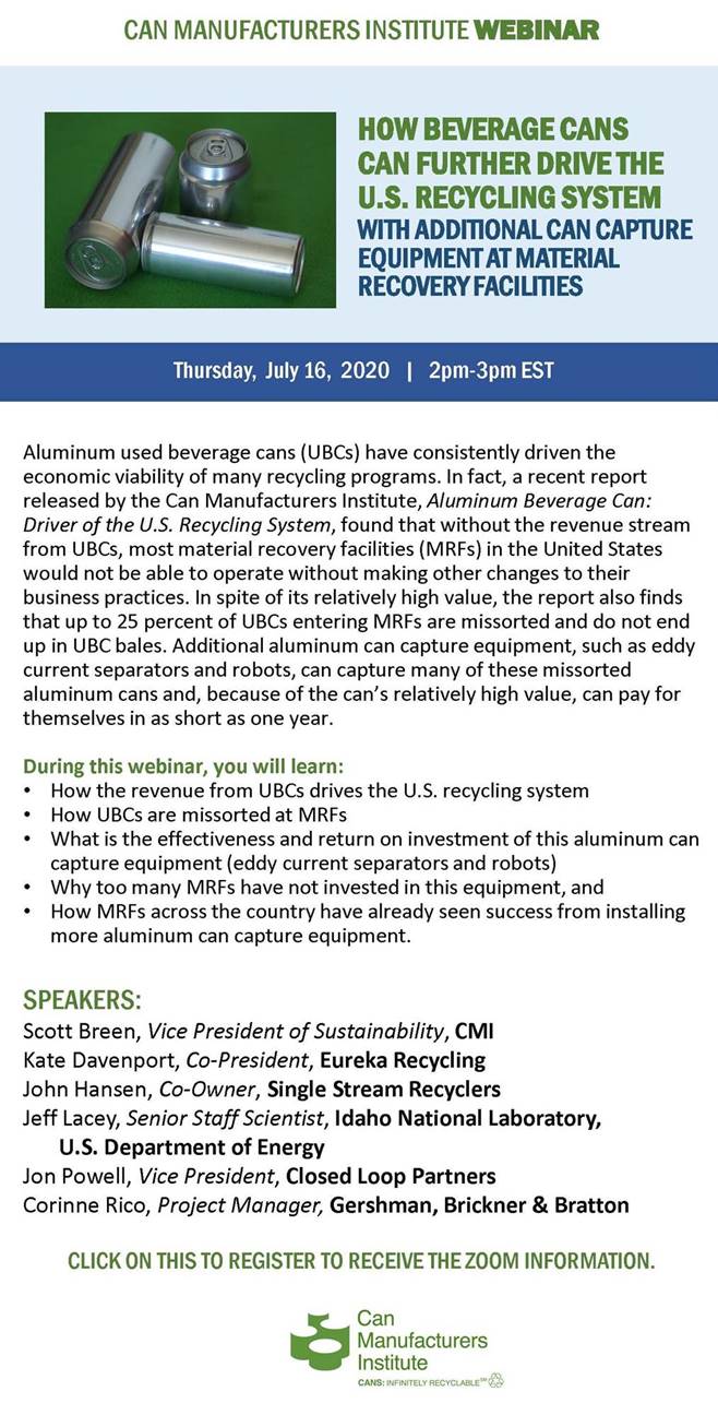See info below re free July 16 webinar and study results from the Can Manufacturing Institute.