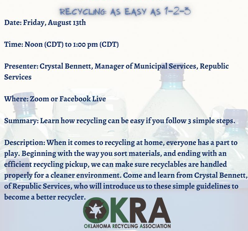 [OKRA] OKRA Lunch and Learn August 13th - Recycling: As Easy As 1-2-3