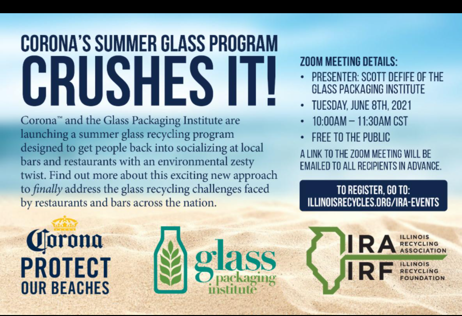 <https://illinoisrecycles.org/ira-events/?fbclid=IwAR129p3ZgXbvs4zSLo5xCuitQtwREsnXbUcOmS69kieJHd5t5aOqp5oXdB8#!event/register/2021/6/8/corona-apos-s-summer-glass-recycling-program>