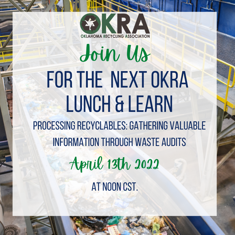 Register now for OKRA’s next Lunch & Learn virtual event taking place on 4.13.22 at Noon CST via Facebook Live/Zoom. This is a FREE event, to register tap the link: https://www.eventbrite.com/e/okra-lunch-and-learn-processing-recyclables-gathering-valuable-info-registration-302663393357 <https://www.eventbrite.com/e/okra-lunch-and-learn-processing-recyclables-gathering-valuable-info-registration-302663393357>