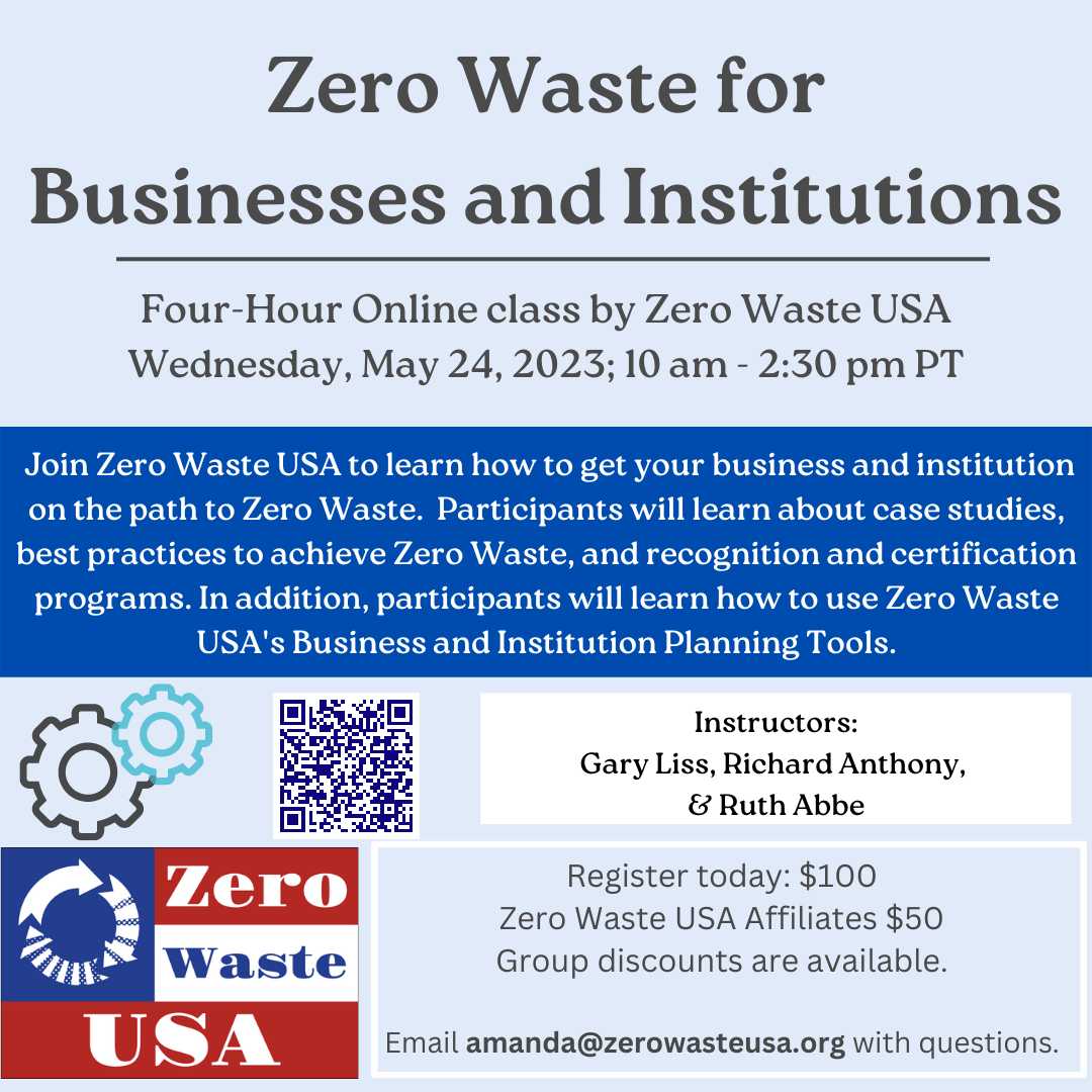 *Cost*: $100; $50 for Zero Waste USA Affiliates. Group discounts are